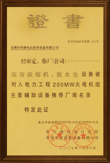 200MW機(jī)組推薦證書