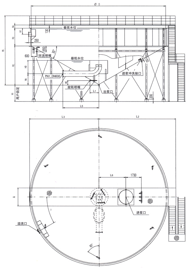 環(huán)流噴嘴法蘭接口 4-PN1,DN80 4-PN1,DN80 6-PN1,DN100 6-PN1,DN100