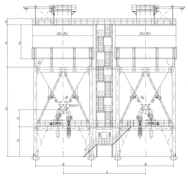 XFC粉倉主要適用于火電站脫硫系統(tǒng)石灰石(粉)的貯存及中轉(zhuǎn)之用。它與庫頂及庫底卸料設(shè)備等組成一套完整的石灰石(粉)處理系統(tǒng)。 XFC粉倉主要有倉體、支架、庫頂平臺、庫底運(yùn)行平臺、倉壁振打裝置、料位指示器、起吊裝置、扶梯、控制室及卸料設(shè)備等組成。